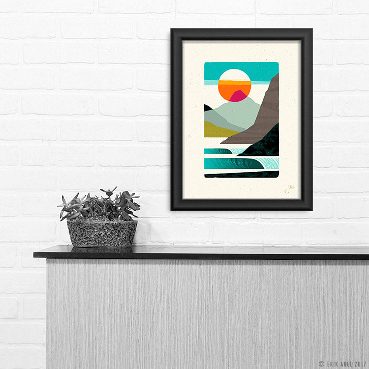 Erik Abel's fine art prints feature modern ocean landscapes, tropical surf and abstract surf scenes, stylized animals, and Pacific Northwest scenery for new and seasoned art collectors. Available as museum quality framed canvas prints and fine art paper prints in various sizes.